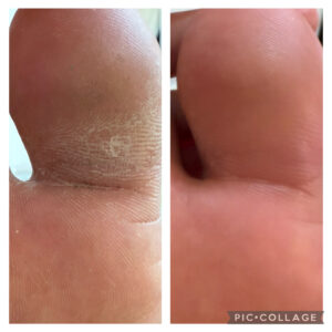 施術後、ふっくらと柔らかくなった足裏を見て、